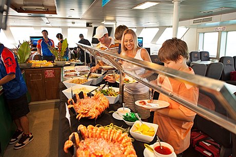 Full Outer Reef experience, 10 minute scenic flight, Hot and cold buffet lunch with seafood, afternoon tea, on-board Wi-Fi access, free introductory snorkelling demonstration provided by a qualified instructor, glass bottom boat and semi-submersible coral viewing tours, touch some of the reef’s unique marine creatures in the marine touch tank, onboard reef ecology presentation by marine naturalist, children can enjoy the safety of the fully enclosed children’s wading pool, all snorkelling equipment provided.